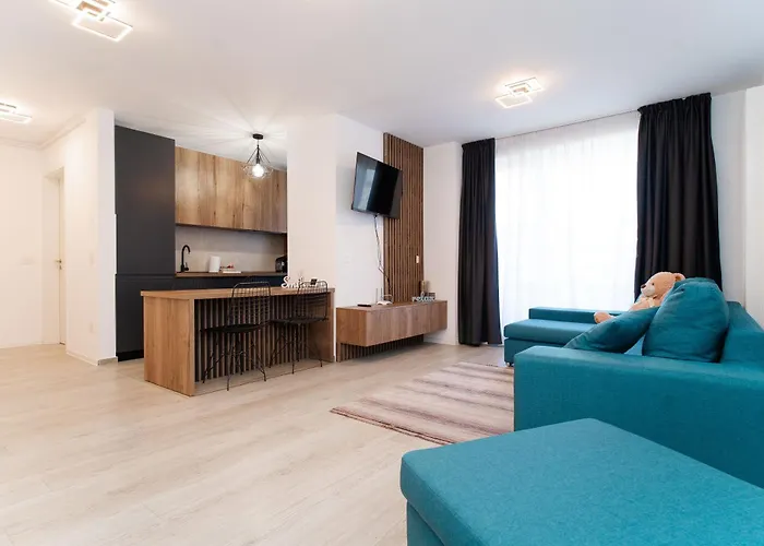 The 1-bedroom apartment offers a full kitchen with a fridge, an oven, and kitchenware, along with coffee/tea making machines. Coresi 2 bus stop is 200 metres away. The added luxury of an aqua park and a sundeck will add to the ultimate relaxation experience. While staying at this property, guests can also participate in such activities as hiking, horseback riding, and bowling.